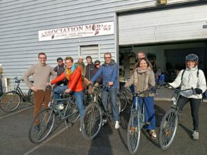 Première étape terrain : MOB 65, symbole du lien entre hier et aujourd’hui. Autrefois outil du quotidien des ouvriers, le vélo devient aujourd’hui levier de mobilité solidaire grâce à l’association créée par Jean-Claude Rouméga et animée par Mickaël Ducrocq.