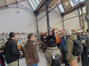 Direction ensuite Récup’Actions, structure d’insertion toujours active près de 30 ans après sa création. Les entrepreneurs ont découvert la boutique, les ateliers de couture et de repassage, avant une “chasse aux trésors” responsable.